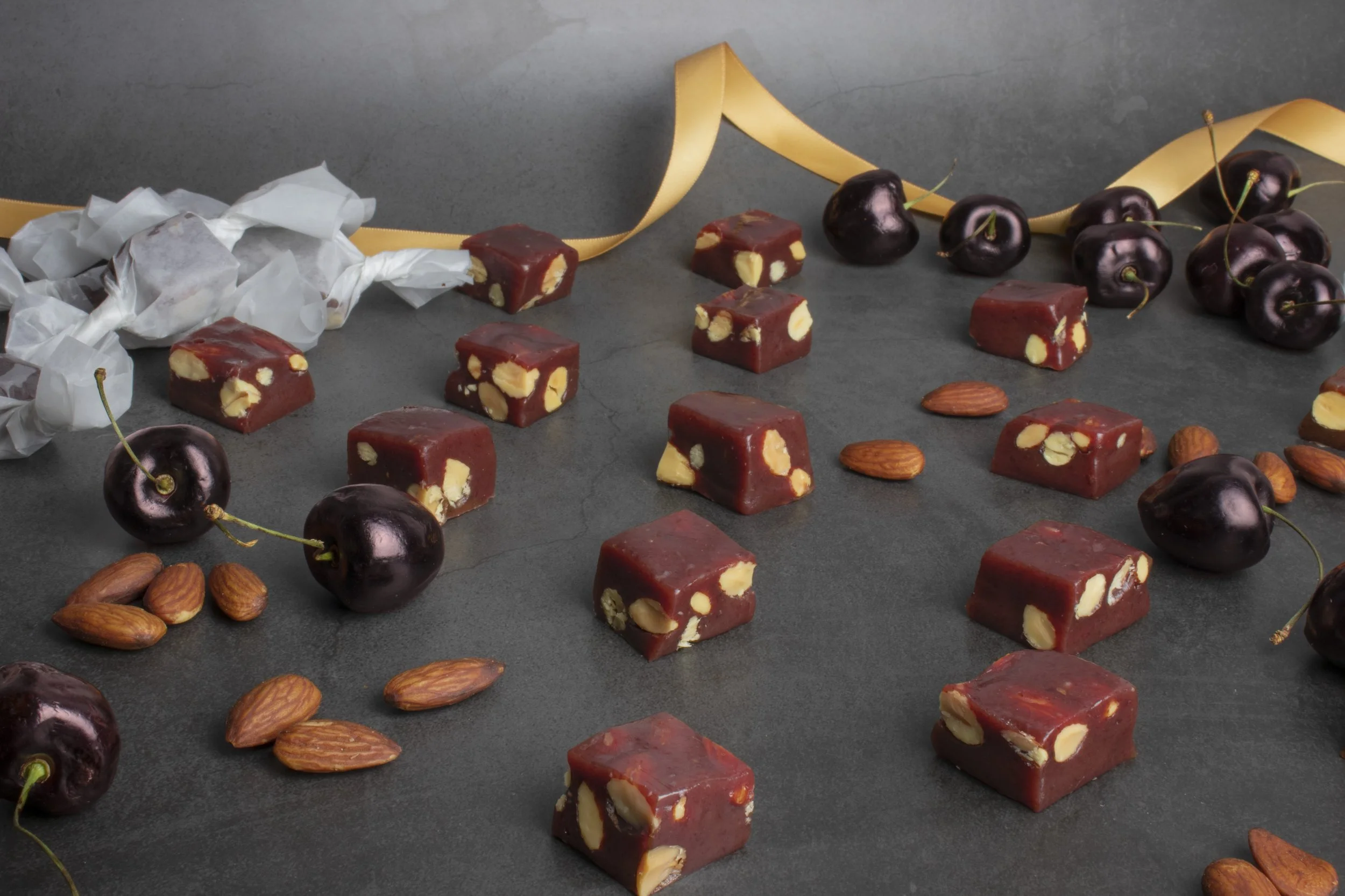 Kansas City Caramels Cherry Almond Caramel, tender bite, fabulous combination of flavors and textures, good intensity and balance, like a classic dessert.